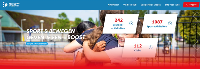 Tijdens de Amsterdamse Sport- en Beweegweek worden er door de hele stad gratis sport- en beweegactiviteiten aangeboden. Al deze activiteiten worden overzichtelijk weergegeven op Sportenbeweegweek.amsterdam. Op dit platform kunnen inwoners gemakkelijk zoeken, vinden en boeken wat het beste bij hen past.